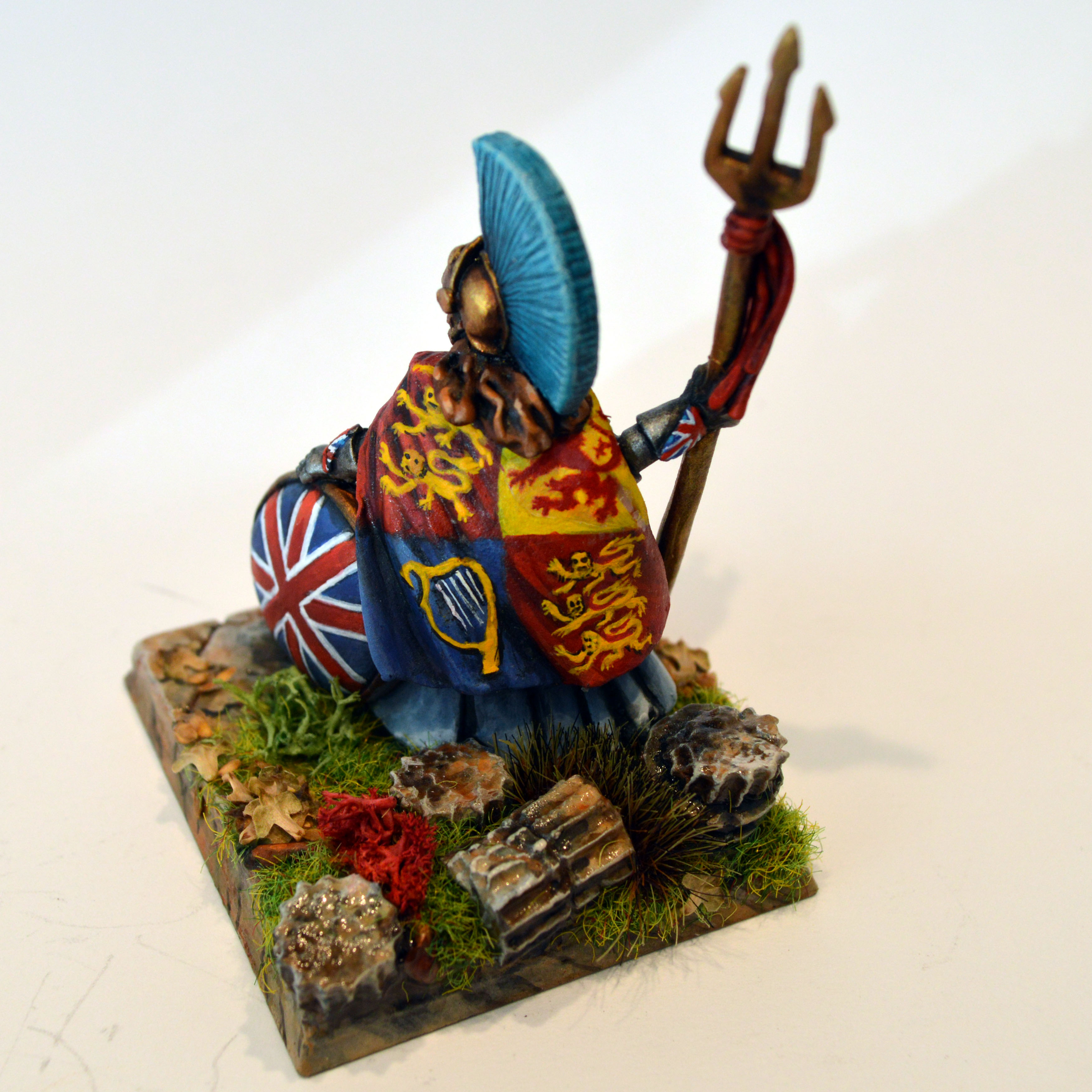 Britannia, viewed from the rear with the Royal coat of arms of the United Kingdom.
