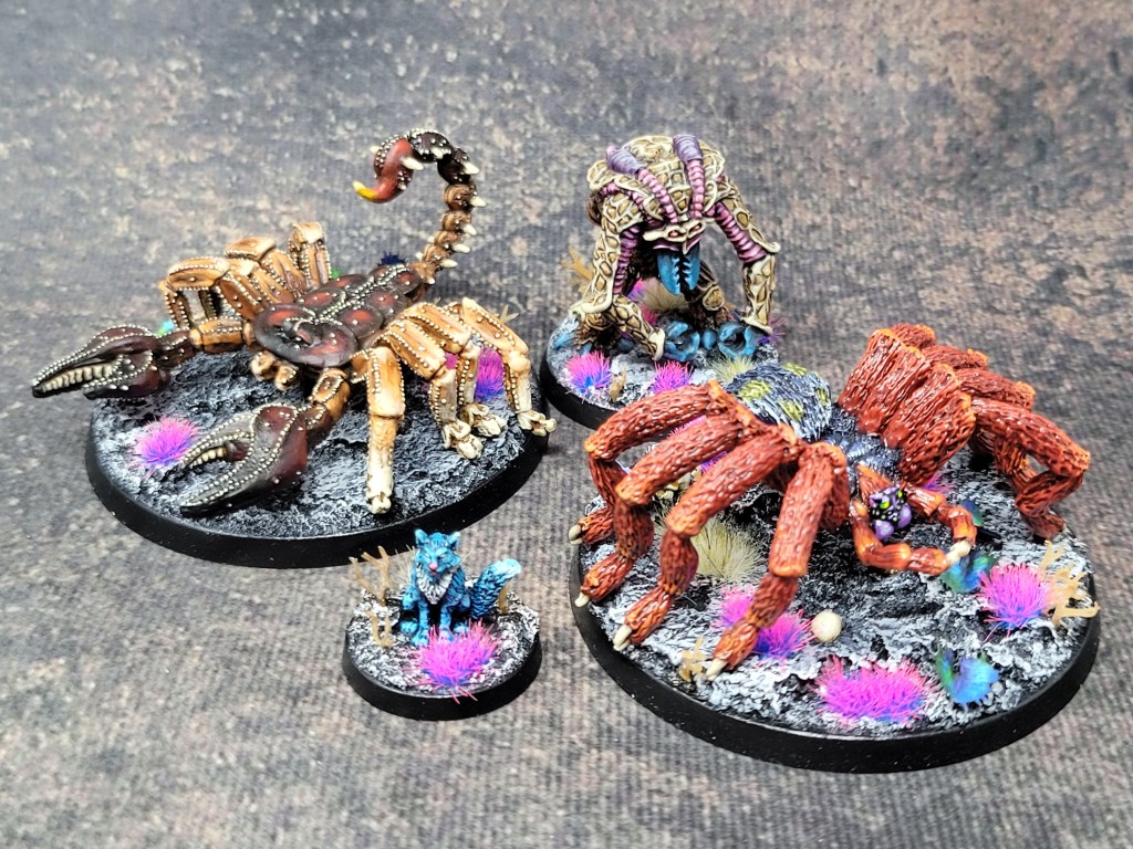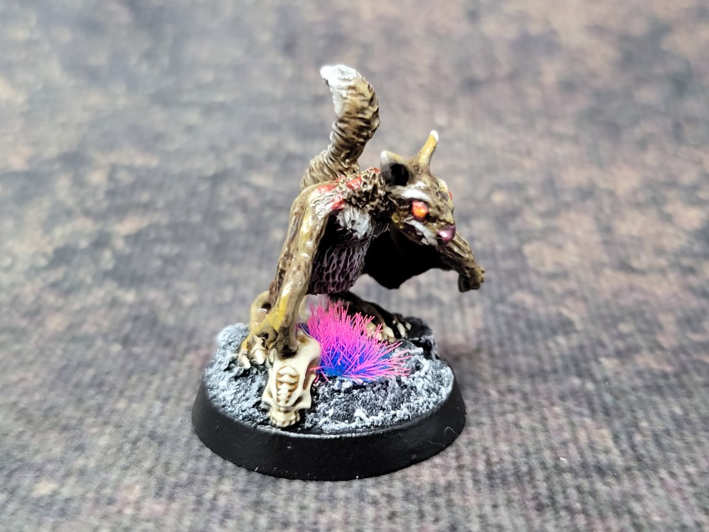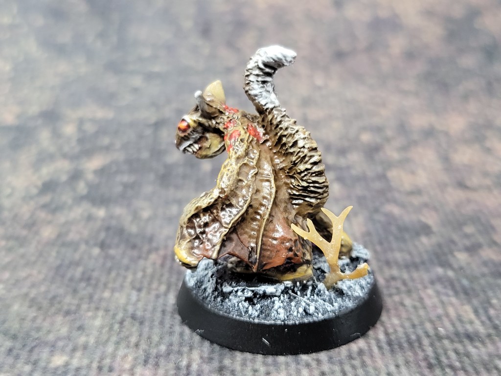 … and a side project, Hive Fleet Mastodon / Xenofauna began. It’ll include various odd tyranid models (and proxies) that I like, and an attempt to paint at least one miniature for each alien and warp entity in Rogue Trader. It’s been done before, and definitely better, but it’ll be a fun endeavour. Up first, some classic Citadel miniatures – an ambull, giant scorpion (or insectoid) and giant spider which I think were sculpted by Trish Carden, and gyrinx. Which is a cat. A very expensive cat.