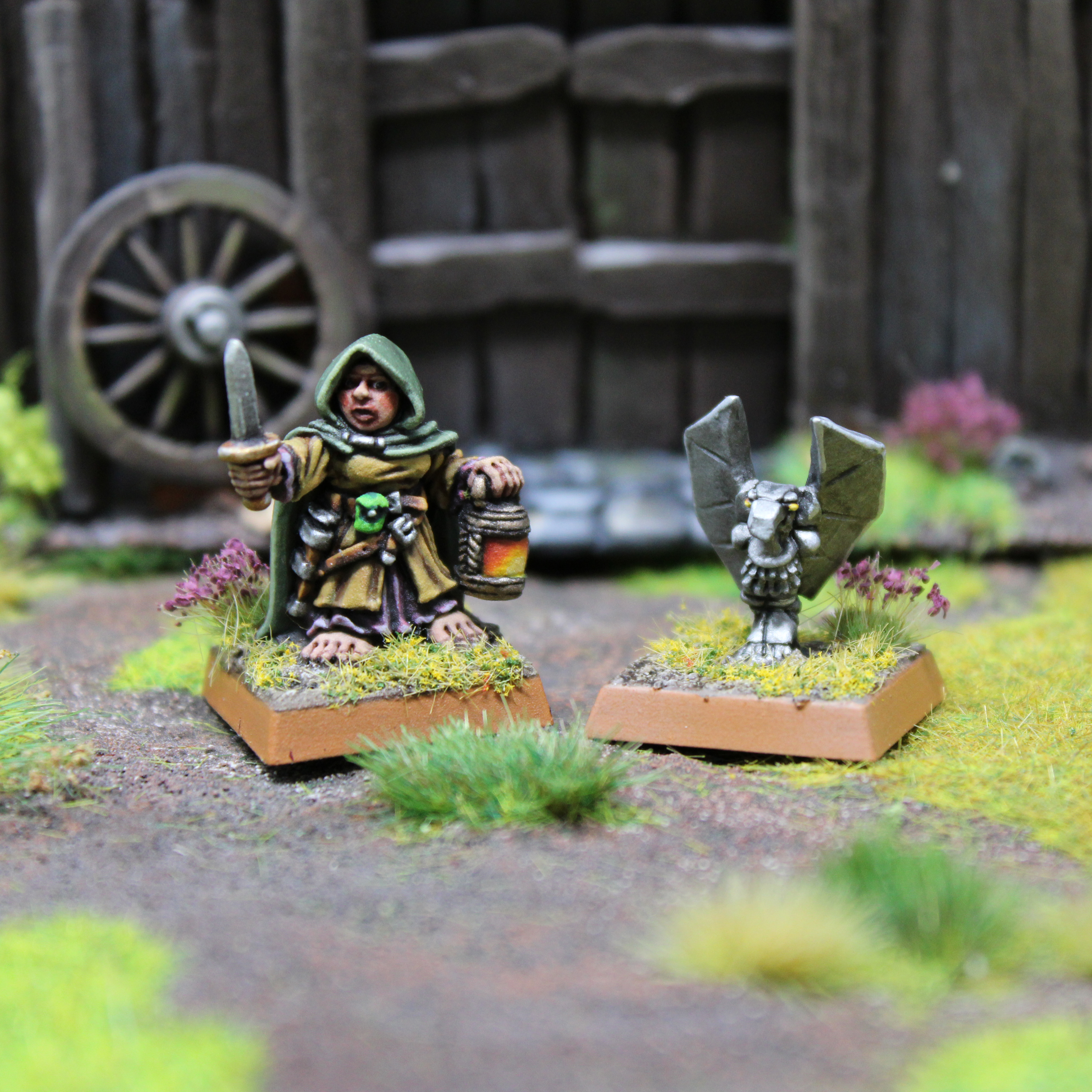 In our last session Matilda was joined by Pesto, a homunculus in the form of a small mechanical bird. Pesto is named after a rook that my dad found injured on the road and nursed back to health. It’s the third corvid that he’s done that with, as well as a blackbird. I’ve used a very old Chaos Familiar from Citadel Miniatures, the ‘Iron Hawk’ for this. I’ve written before that I’m fond of that range, and I remember thumbing through the 1991 Red Catalogue over and over imagining all the creatures and characters I’d collect. This maybe wasn’t totally worth the wait. It’s one of the most simple-to-paint miniatures that I own – a basecoat of Citadel Leadbelcher, then washed with Nuln Oil, Ironbreaker drybrush, and some Stormhost Silver highlights. I painted the eyes to look like amber, but it’s hard to see that in these pictures.