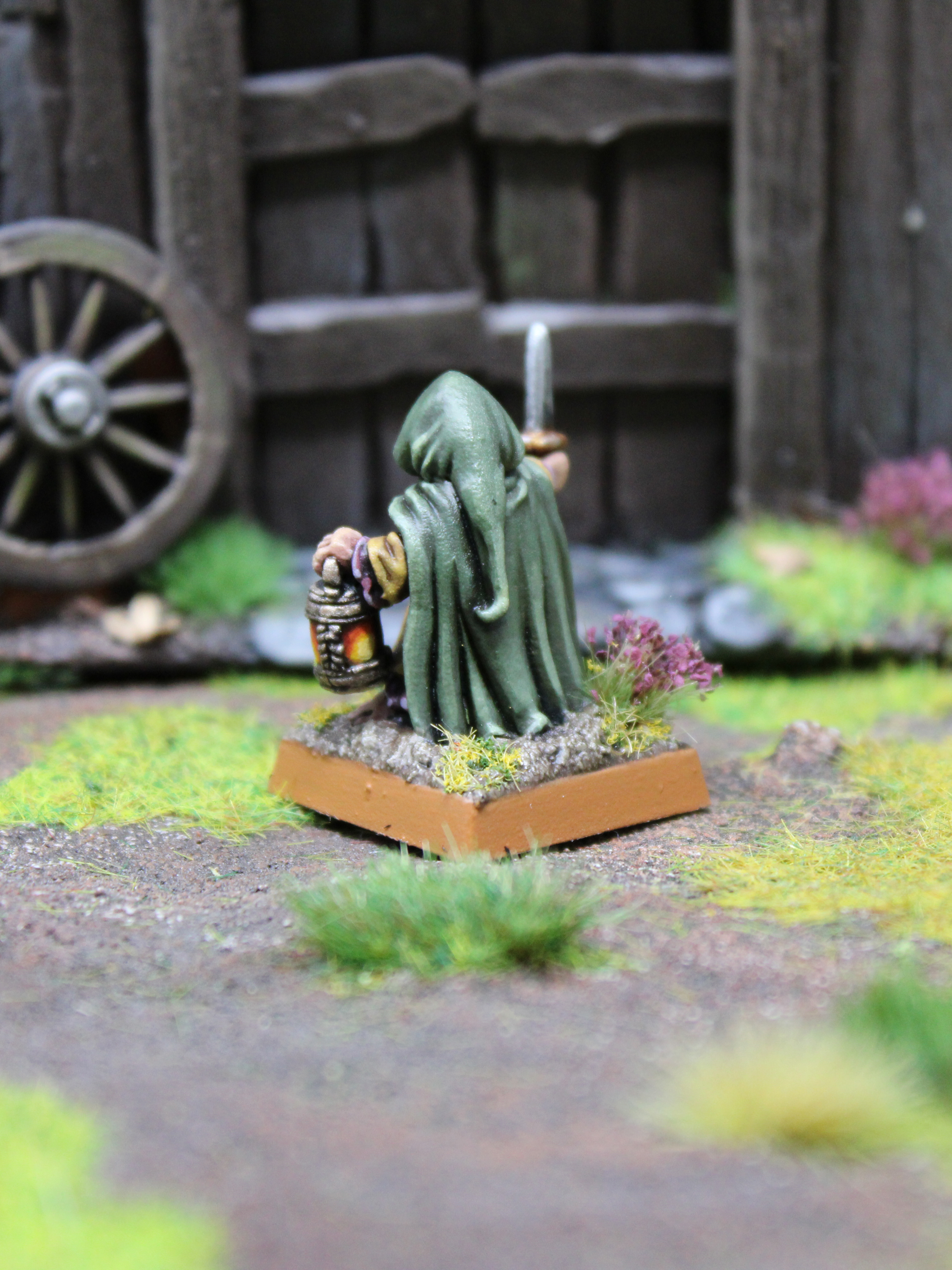 So, meet Matilda Molesworth, a halfling alchemist with a recipe to improve crop yields, and a habit of mistrusting every NPC she meets. Matilda is adventuring in Old Zamokot, city of nine gates and ten thousand lanterns, where the sun hasn’t risen for 1,000 years, with our old campaign friends Mike and Ali, playing a grizzled cop and a drug-addled barbarian. The miniature is from Midlam Miniatures, who are based just on the other side of the river from us – but I won’t hold that against them. It’s a lovely piece with nice deep sculpting and lots of character and details, which was loads of fun to paint.